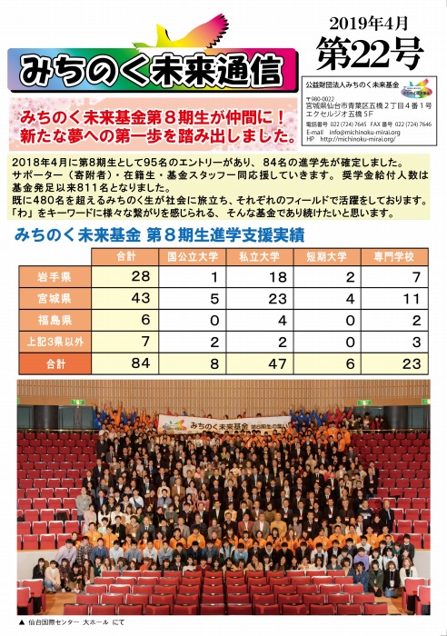 ・みちのく未来基金第2期生が誕生! 122名に希望の春が!