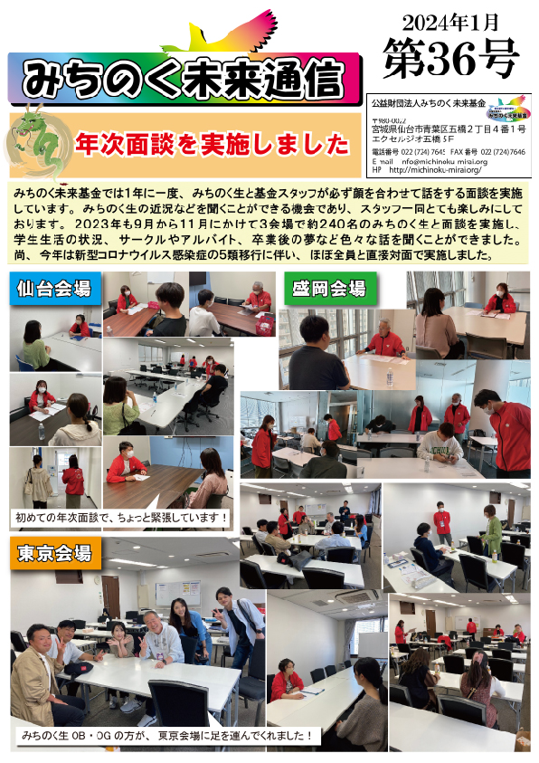 10月から12月にかけて盛岡、東京、仙台でみちのく生一人一人と行った年次面談