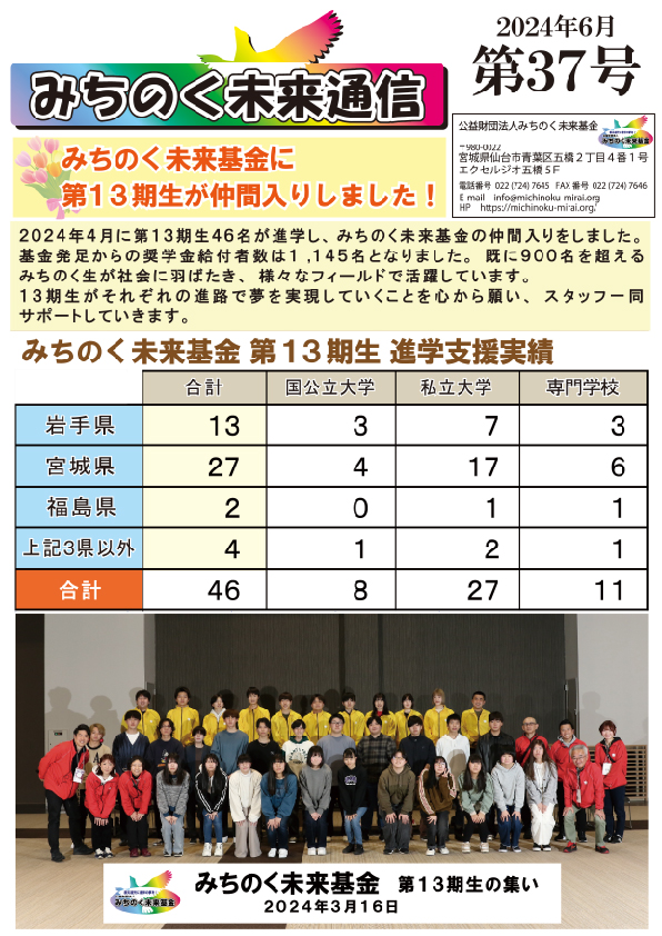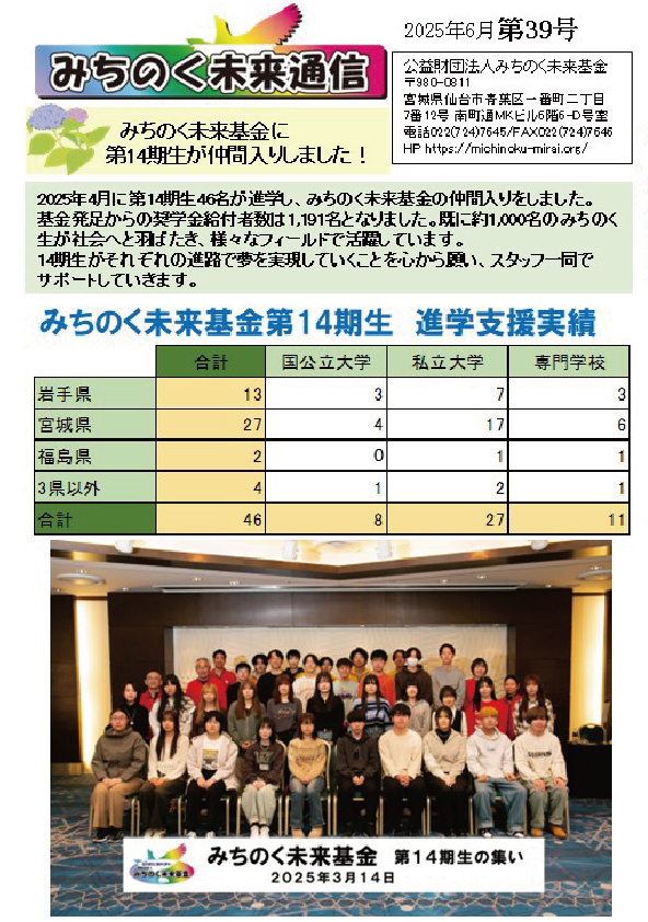 ・みちのく未来基金第14期生 進学支援実績